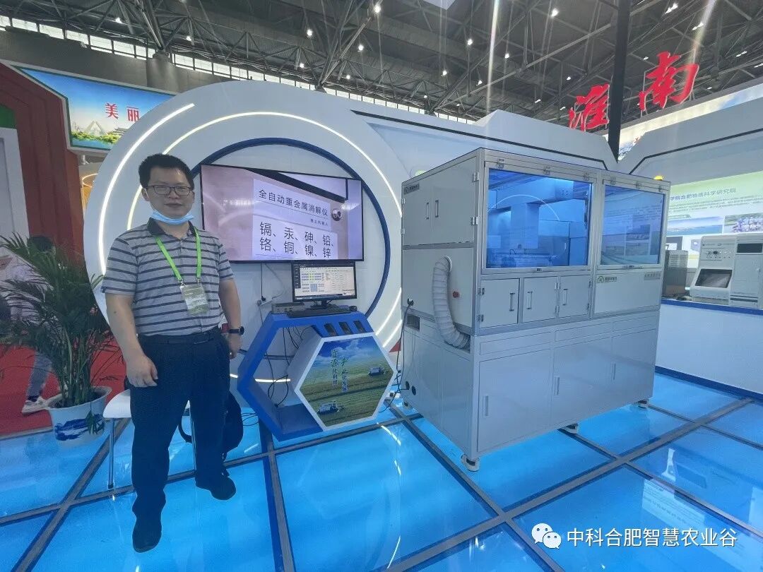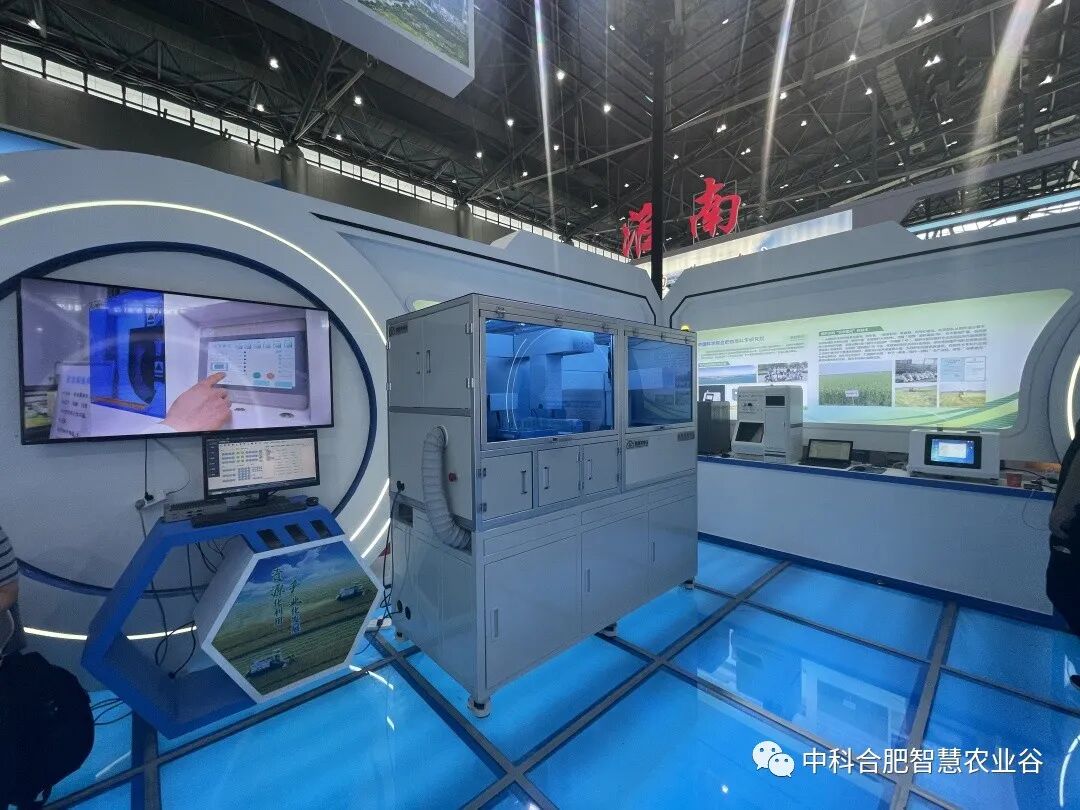 中科合肥智慧农业谷(以下简称“农业谷”)参加了本次展会,并于现场展示了高通量土壤成分智能检测机器人装备中的加热浸提平台。